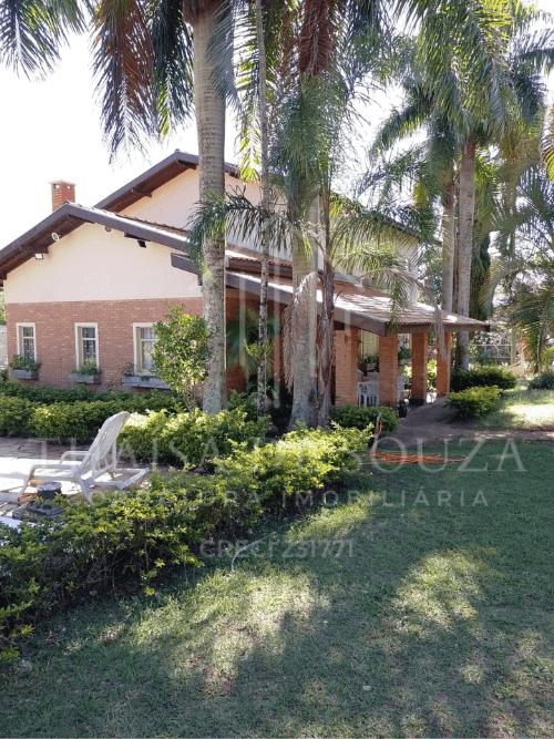 Casa de hospedes na frente com 1 quarto, 1 sala, 1 banheiro, cozinha, canil de cachorro, 2.500 m² gramado. Churrasqueira com pia, 1 cozinha, terraço grande. Cômodo de guardar ferramentas.